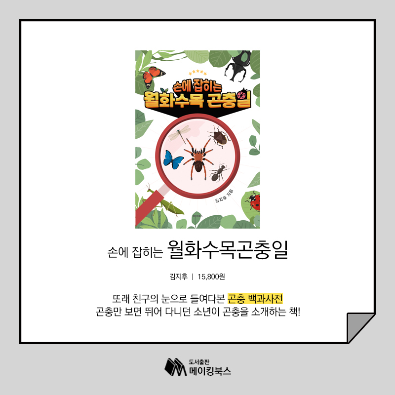 또래 친구의 눈으로 들여다본 곤충 백과사전이토록 재미있고 신비한 곤충의 세계이 책은 여기저기 방방곡곡. 곤충만 보면 뛰어 다니던 소년이 곤충을 소개하는 책이야. 키웠던 곤충, 만났던 곤