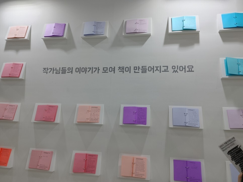 다양한 주제 중 한 편의 글을 쓰고, 글을 모아 책처럼 전시하는 부스였어요.