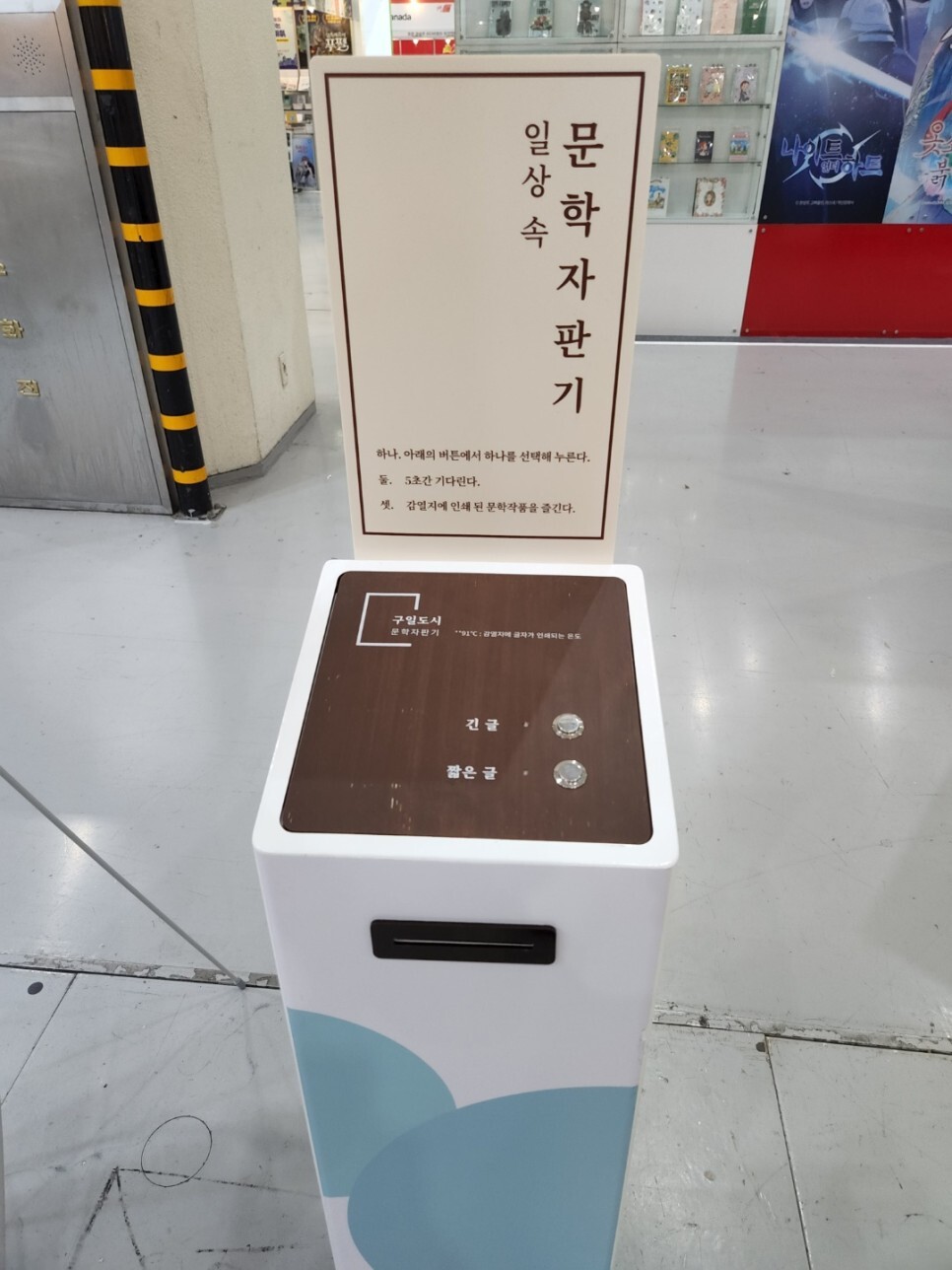 버튼을 누르면 글귀가 나오는 자판기, 인생네컷 포토부스,